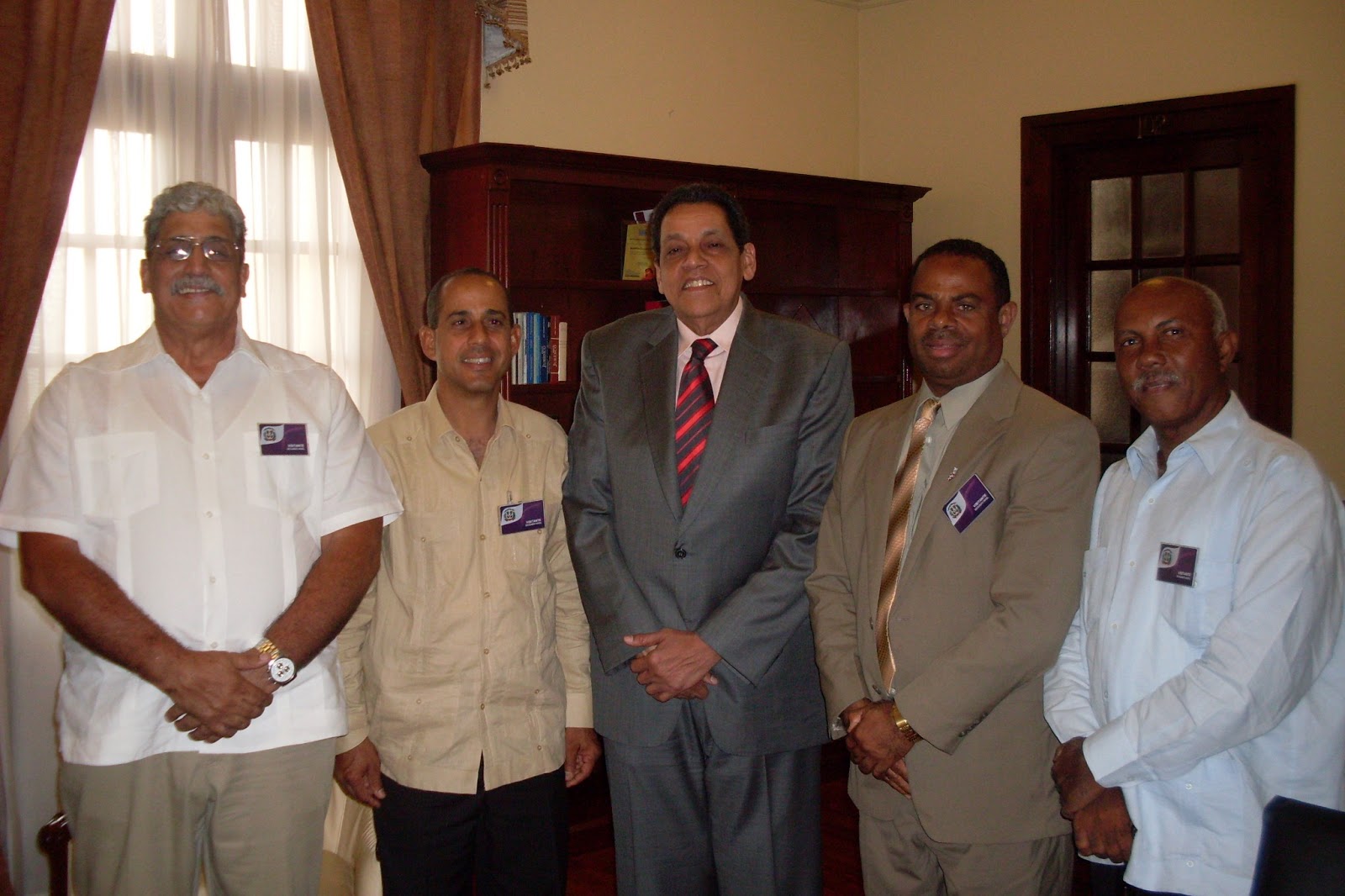 Al centro el Consultor Jurídico del Poder Ejecutivo, doctor Cesar Pina Toribio, quien recibió en su despacho del Palacio Nacional a los presidentes de la ANPA, ADIA, y COLVET, Ingenieros Andrés Gómez, César Matos, y el doctor Sigfredo Frías, respectivamente.